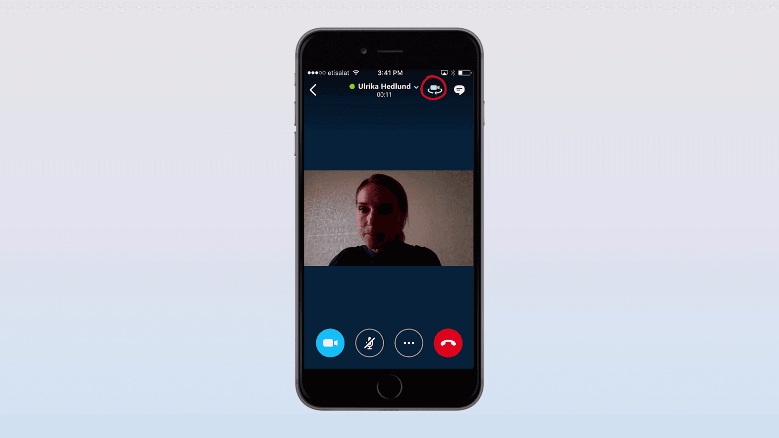 If your mobile has both front and back-facing cameras, you can switch camera to show what you are seeing. To switch camera in Skype for Business on your mobile, click the rotate camera button.