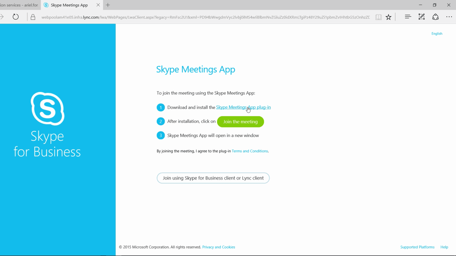 You can invite anyone to a Skype for Business meeting – as long as they have an Internet connection. When the customer named Ariel clicks on the link to join the meeting a browser window opens up with step by step instructions for how to join the meeting. Since this is the first time Ariel joins a Skype for Business meeting, she is instructed to download a plug in to her browser.