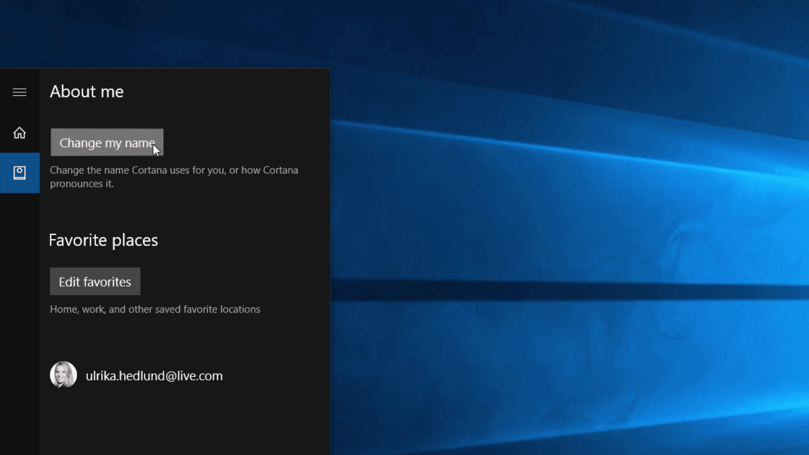 Here you can add information and to make the interaction more personal, for example, you can tell Cortana what you prefer that she calls you.