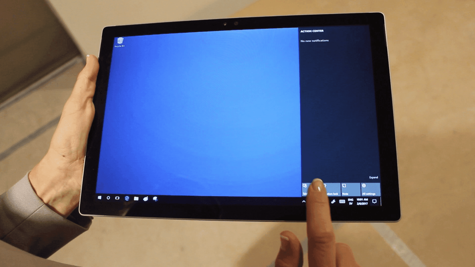 When I get onsite I remove the keyboard from the Surface and open the “Action Center” to switch to touch mode. Now I can easily interact with Windows by tapping on the screen.