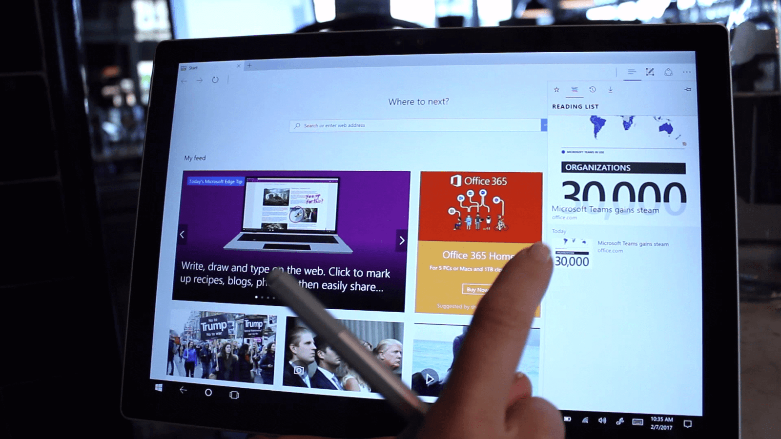 While I’m waiting for Karen to come, I open up Edge on my Surface. My Reading list is synchronized across my devices, so now I can access the article I didn’t have time to read this morning.