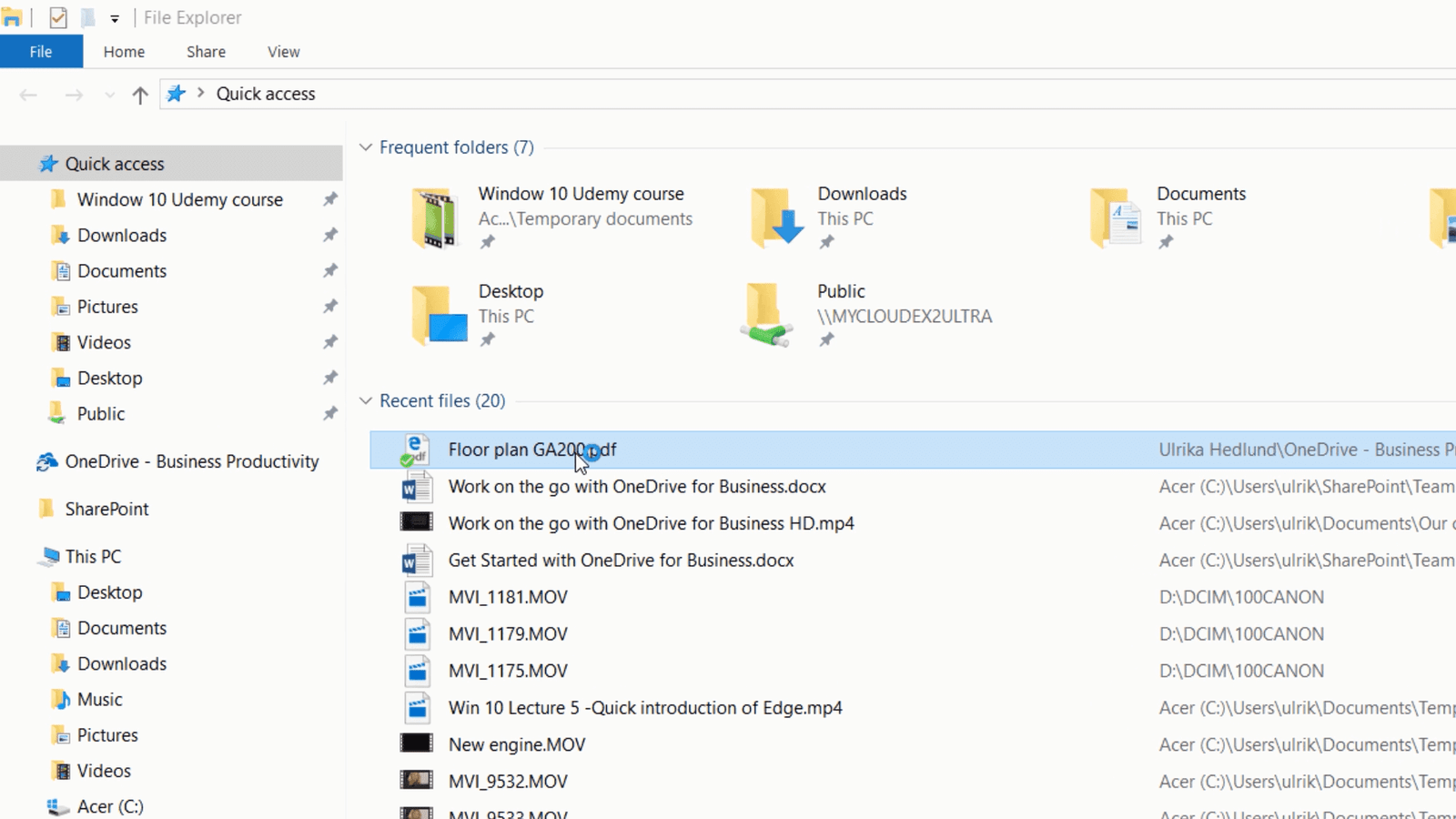 I still have some time before the onsite meeting in our new office, so I’ll open up the floor plan to review it. I can easily find whatever I need by just searching for it using Windows powerful search. I can also quickly access documents I recently worked on, by opening File Explorer and locating the file in the “Recent files” list.