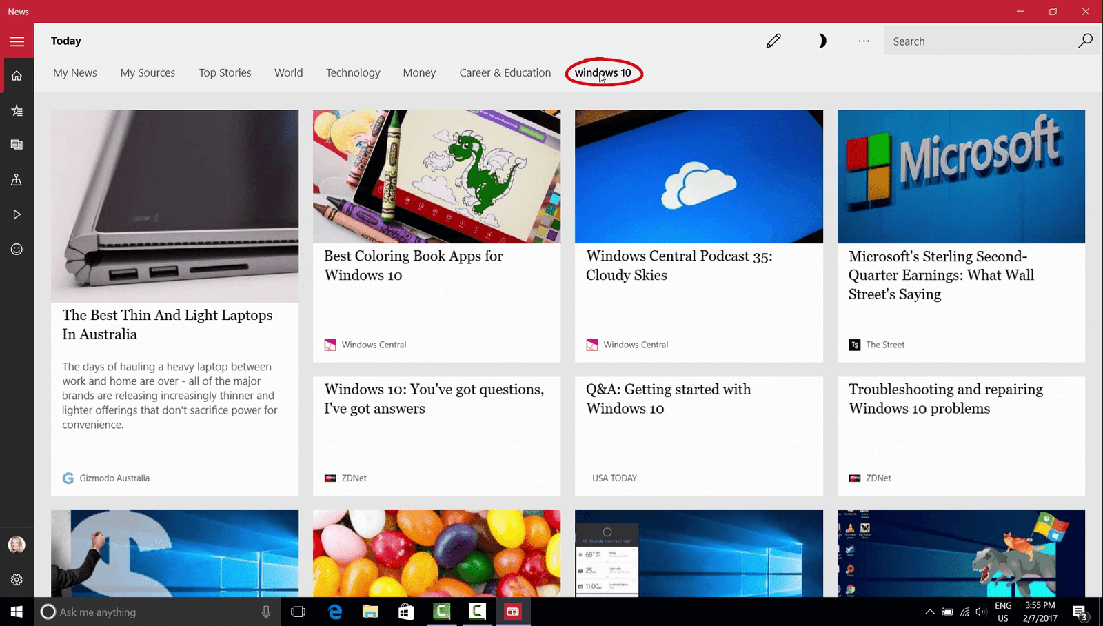 Customizing the Windows News App