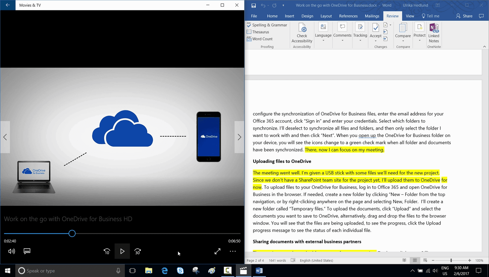 I’m currently reviewing a transcript for one of our videos. I can easily follow along in my text by having the windows open side by side.