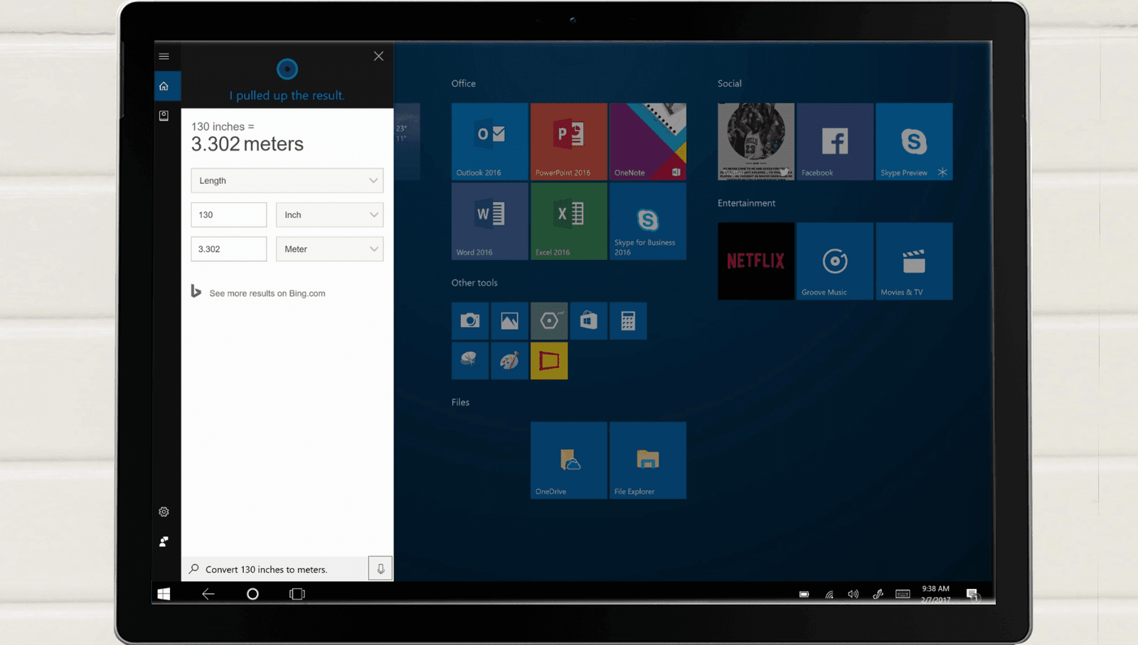 Ulrika: –Hey Cortana, convert 130 inches to meters.