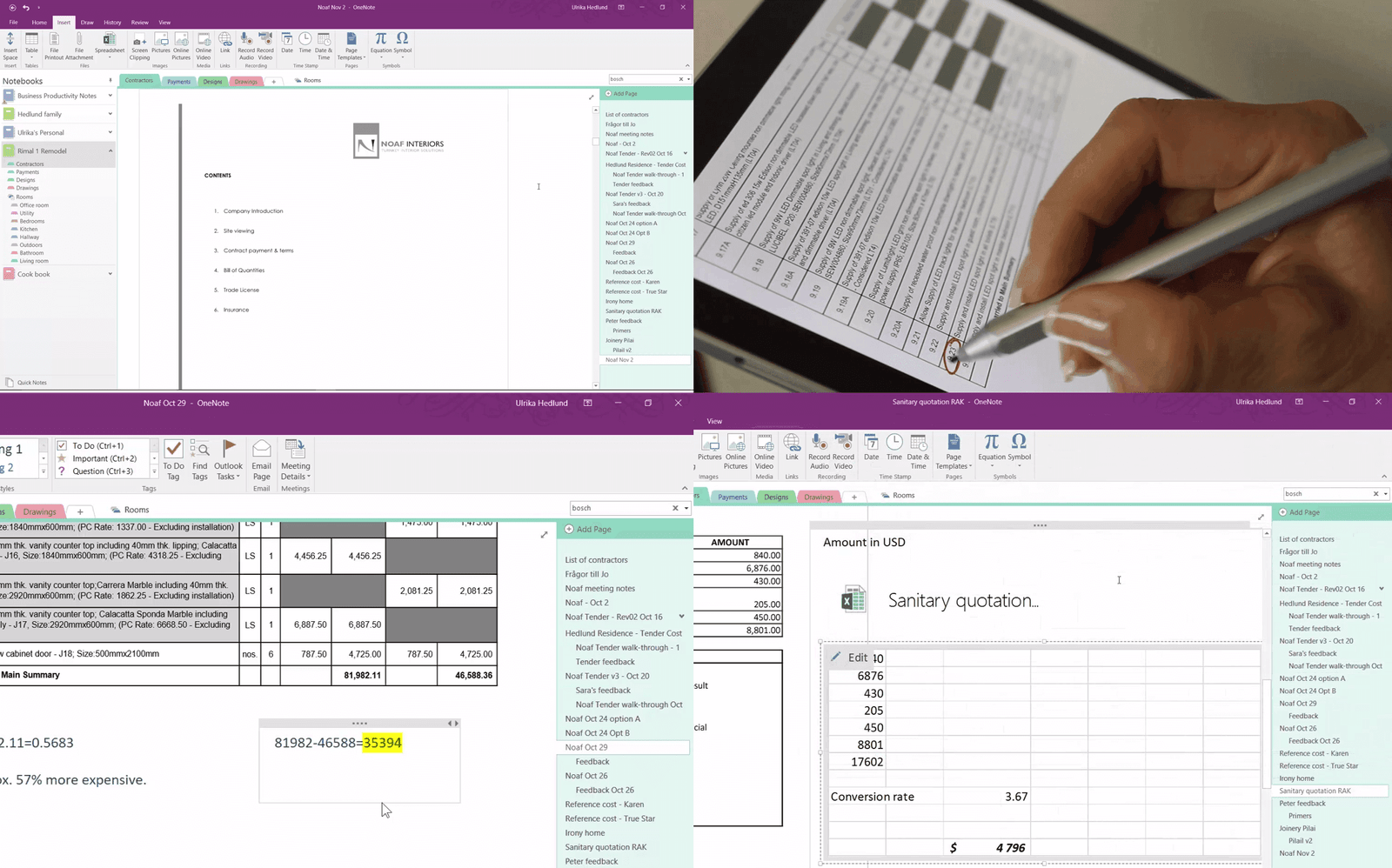 In the final section of the documentary, you will learn how you can go fully paper-less by inserting file printouts into your OneNote notebook. If you have a tablet with a stylus, you can draw and write comments on the file printout. This way you always have your documents and your notes with you, without having to carry piles of paper around. Also, you don’t have to worry about carrying a calculator with you. With OneNote, you can perform calculations on the spot. Just write down the equation and OneNote gives you the answer. Or, for more advanced calculations you can just insert an Excel spreadsheet into your notes.