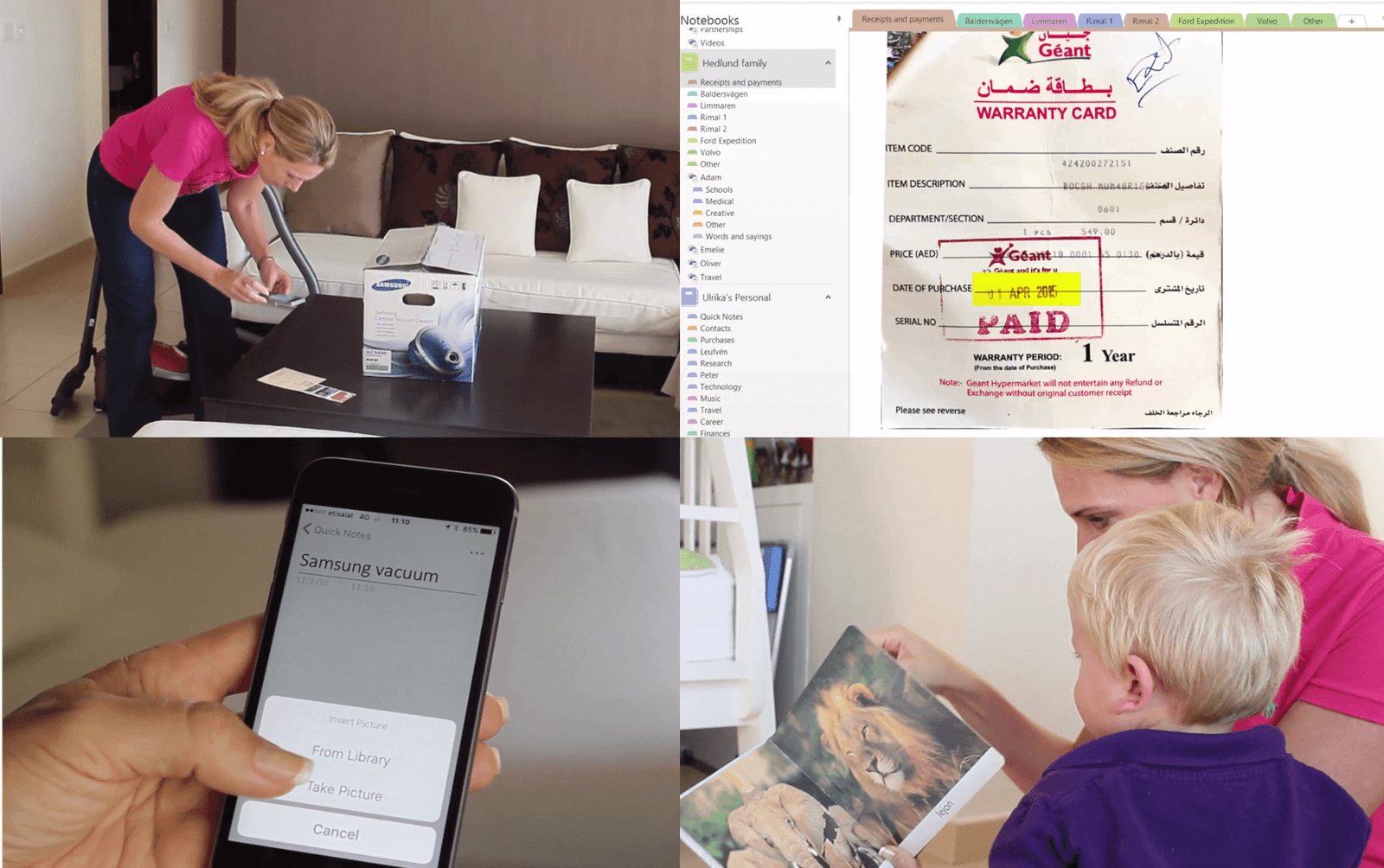 In the second part of the documentary you will learn how you can use OneNote and Office Lens to digitize receipts, business cards and important (and not important but sentimental) documents. I use this for everything from receipts and warranties, children vaccination records and drawings.