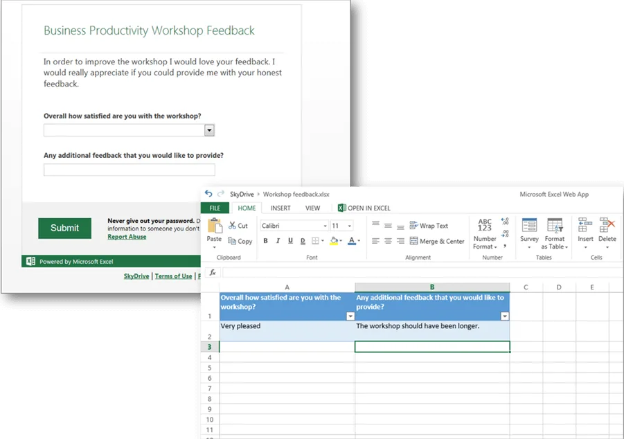4. Easily collect feedback using Excel Surveys